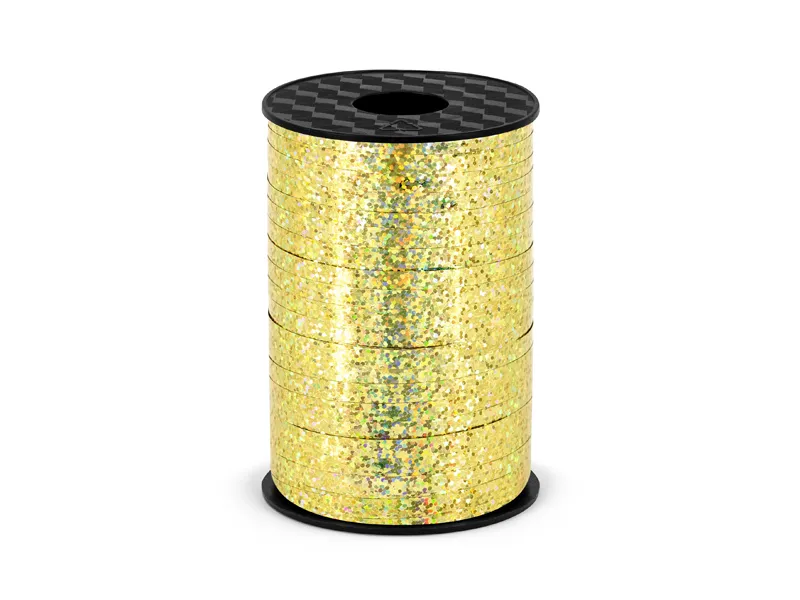 Rafie din plastic holografic, aurie, lățime aproximativ 5 mm, lungime aproximativ 225 m.